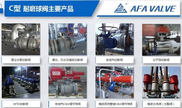 As a leader in the field of metal touch wear-resistant ball valve technology, AFA has been committed to providing efficient and reliable wear-resistant ball valve solutions to domestic and foreign coal chemical and petrochemical enterprises, and focuses on the research, development and manufacturing of metal touch wear-resistant ball valves. As a leading product that is efficient, durable and suitable for harsh working conditions, the wear-resistant C-ball valve has obtained a national invention patent and filled a gap in the domestic market. It has significant advantages in coal gasification applications and is also widely used in coal chemical industry, petrochemical industry, offshore platform, LNG, MTO, MDI, PTA, POSM, CHPPO, polycrystalline silicon, hydrogen peroxide, maleic anhydride and other industries. Its unique wear-resistant performance can withstand the test of various harsh working conditions such as high temperature, high pressure, erosion, scaling, and corrosion during the production process. It effectively extends the service life of the equipment, reduces maintenance costs, and extends the system operation cycle. In addition, the wear-resistant C-ball valve also has good sealing performance and switching flexibility, which can effectively prevent medium leakage and ensure production safety.