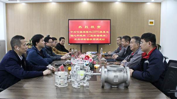 The acceptance team is composed of experts from Sinopec Zhenhai Refining and Chemical, Sinopec Shanghai Engineering Co., Ltd., Shanghai Zhongshen Technology Co., Ltd. and AFA Company. The acceptance product is the localization research and development of the double eccentric semi-ball valve (top-mounted C-ball valve) for the 300,000 tons/year CHPPO unit of the Phase II project of Sinopec Zhenhai Refining and Chemical Base.