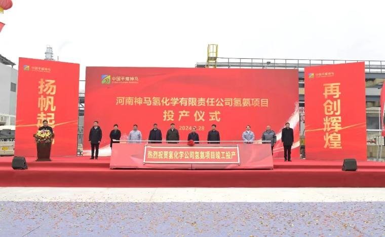 At 10:18 a.m., Mr.Li Mao, Chairman of China Pingmei Shenma Energy Group Co., Ltd., announced the start of production of the hydrogen-ammonia project of Henan Shenma Hydrogen Chemical Co., Ltd. Chairman Li Mao then invited Pingdingshan Vice Mayor Xu Hongbing, CPPCC Vice Chairman Zhang Dianzi, Henan Shenma Hydrogen Chemical Co., Ltd. Party Secretary and Executive Director Wang Dayong and other leaders to press the production pneumatic button together, marking the official start of production of the hydrogen-ammonia project of Henan Shenma Hydrogen Chemical Co., Ltd.