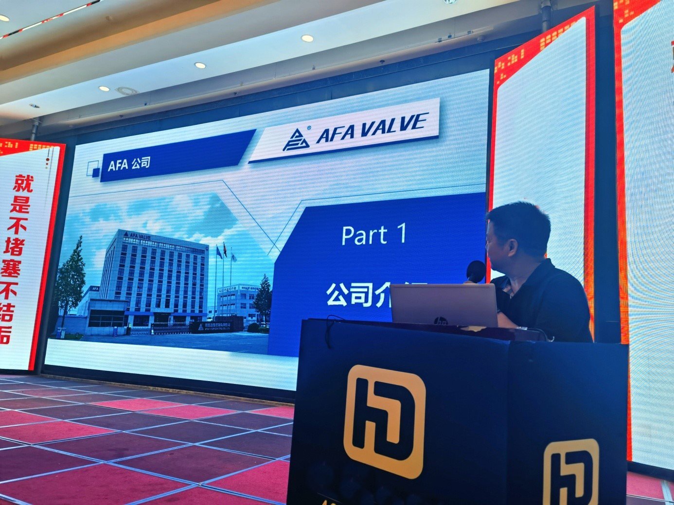 As the main co-organizer of this conference, AFA Flow Control Co., Ltd. (hereinafter referred to as AFA) organized a professional technical and sales team to participate in the conference. During the conference, the company's image, technology, products, services and other aspects were displayed and promoted. The main users of the company who participated in the conference were visited and communicated. In-depth contact and communication were carried out with potential users in the market. And reference solutions and suggestions were proposed for the problems existing in the use of pipeline valves such as black water, gray water, slag water, chilled water and synthesis gas in the pulverized coal gasification process of various coal chemical production enterprises. Xie Zhengze, chairman of AFA, made a speech entitled "C-type wear-resistant ball valve escorts the operation of pulverized coal gasification" at the meeting, which was well received by the delegates and experts attending the meeting.