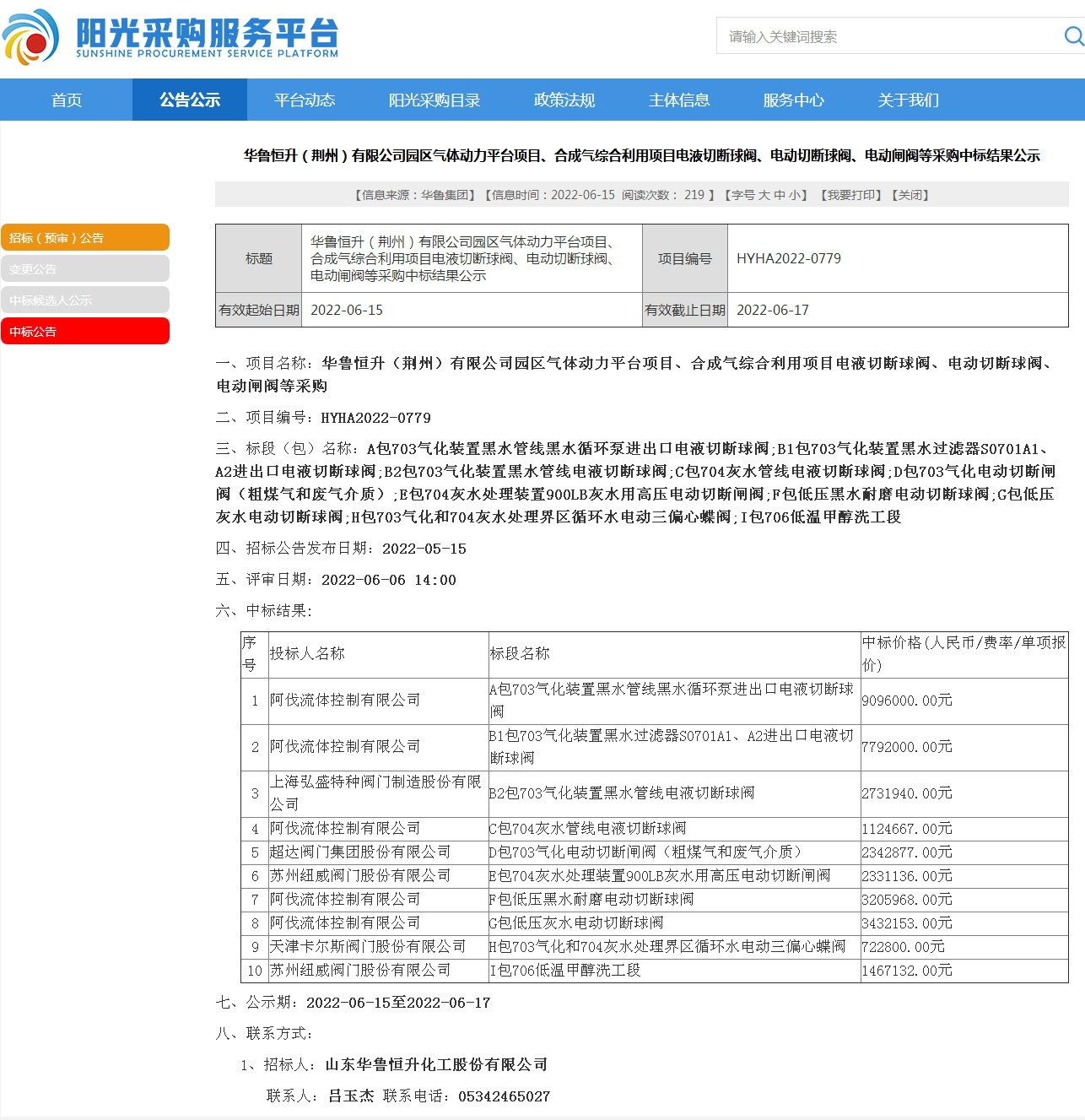 In June 2022, AFA Flow Control Co., Ltd. (hereinafter referred to as AFA) won another large number of orders in the bidding for the purchase of wear-resistant ball valves for the gas power platform and synthetic gas comprehensive utilization project of Hualu Hengsheng (Jingzhou) Co., Ltd.