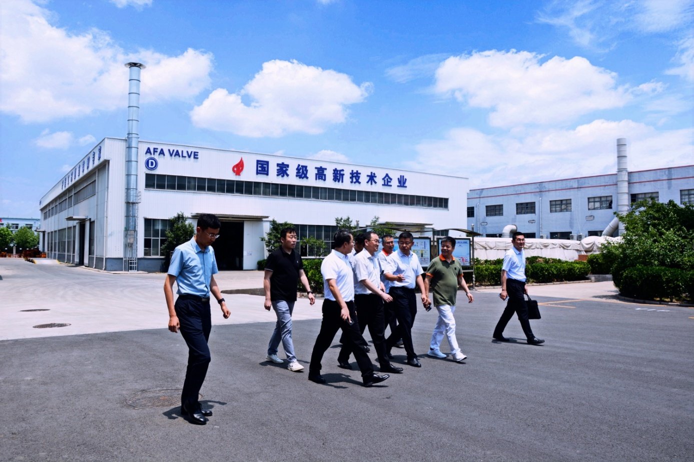 On the morning of June 21, Jiang Haitian, member of the Party Leadership Group and Deputy Director of Qingdao Municipal Bureau of Industry and Information Technology, led Wang Shiguo, Director of the Enterprise Service Department of the Municipal Bureau of Industry and Information Technology, and Zhang Xiwei, a second-level chief clerk, to visit AFA Flow Control Co., Ltd. (hereinafter referred to as AFA) for inspection and research. Sui Junchang, Director of Huangdao District Bureau of Industry and Information Technology, Zang Wenke, Head of the Office, Yang Xiudong, Deputy Section Chief, Zhu Zengjian, Secretary of the Party Working Committee of Tieshan Street, and Zhang Guowei, Deputy Secretary, and other leaders accompanied the investigation. Xie Zhengze, Chairman of AFA, and relevant company leaders and heads of major departments attended the reception.