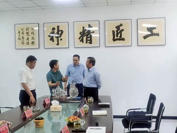 On the morning of June 3, Xie Longmu, deputy director of the Qingdao West Coast New Area Management Committee, and Liu Ranji, secretary of the Party Leadership Group of the District Industry and Information Technology Bureau, visited AFA Fluid Control Co., Ltd. (hereinafter referred to as AFA Company) for research. Guan Shaobo, secretary of the Qingdao West Coast Traffic Business District Management Committee, Zhu Zengjian, secretary of the Tieshan Street Party Working Committee, and Lin Wei, deputy secretary of the Party Working Committee and director of the office, accompanied the investigation. Xie Zhengze, chairman of AFA, and relevant company leaders and heads of major departments attended the reception.