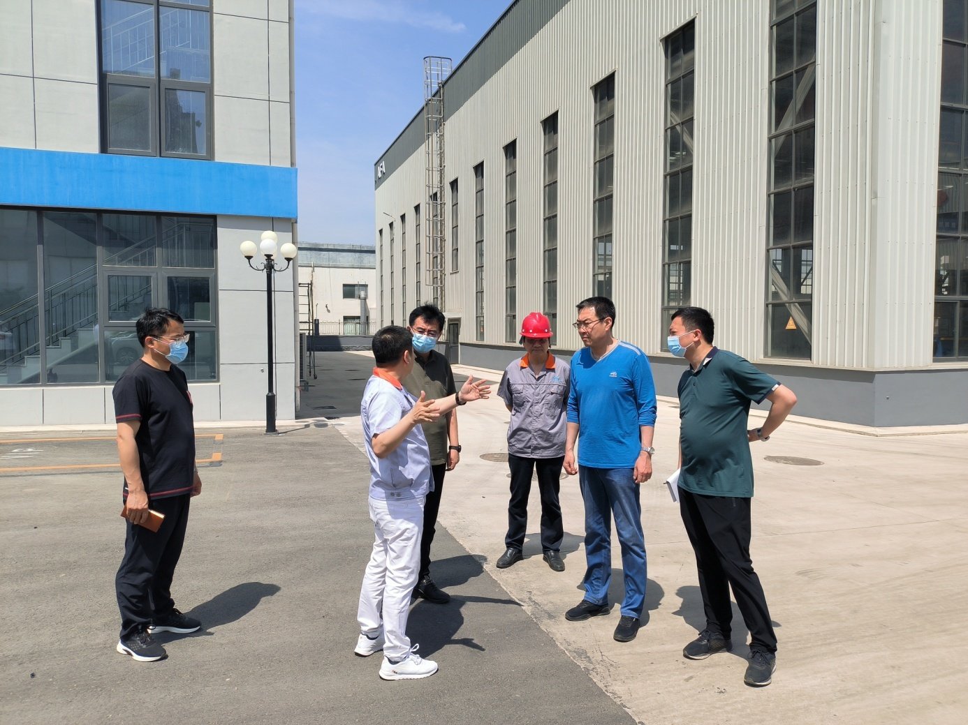 Chairman Xie Zhengze and other company leaders accompanied Secretary Guan Shaobo and his party on a visit and inspection, and briefly reported on the company's production and operation, technological research and development, market prospects, pandemic prevention and control and employee’s daily life.