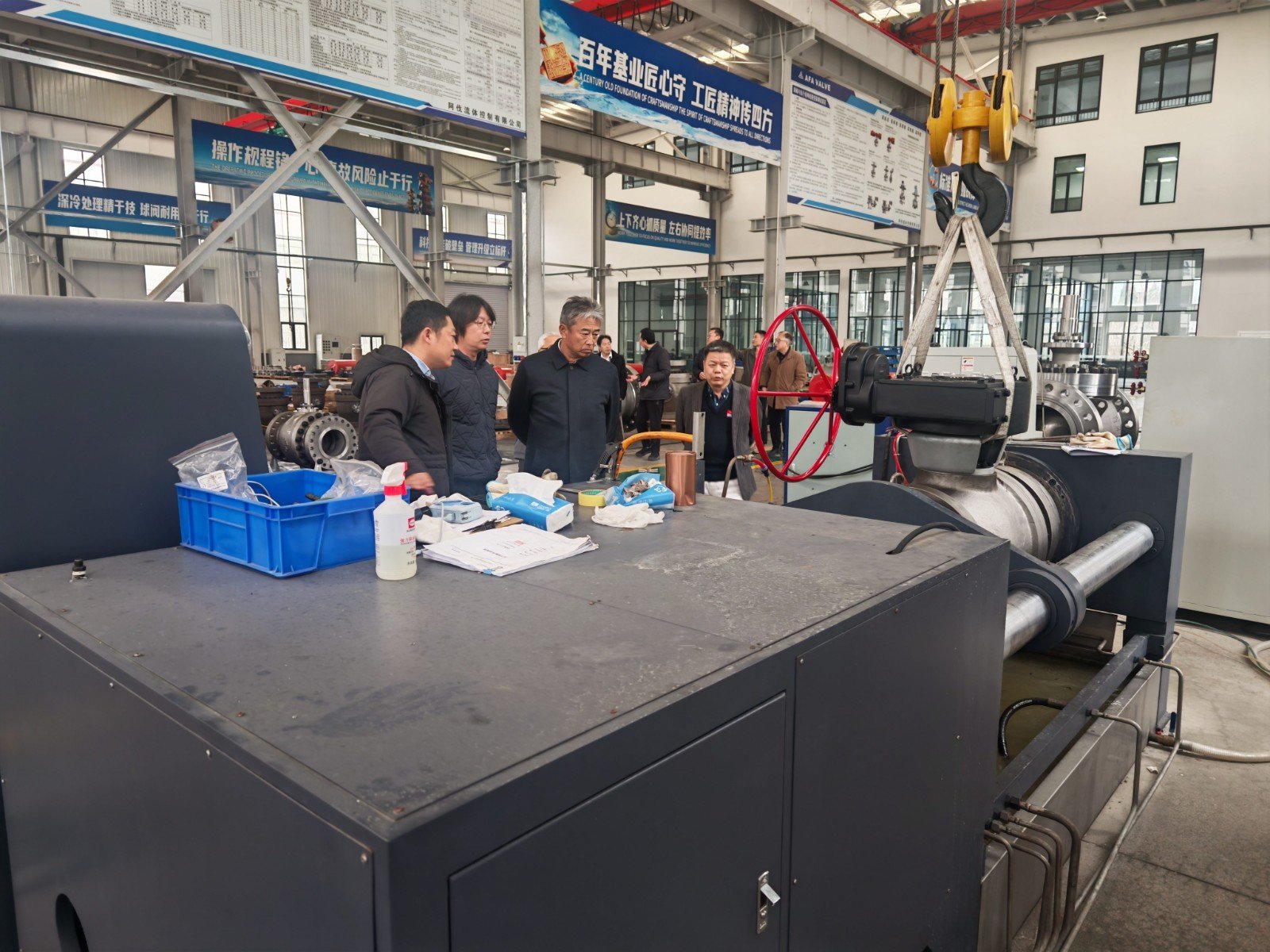 Chairman Xie Zhengze accompanied representatives from Japan Hisakado Co.,Ltd.on a comprehensive tour of the production workshops. They visited various production workshops, including those for machining, ball valve processing, painting, grinding, assembly, pressure testing, final inspection, and painting and shipping. They also toured the areas where semi-finished products and finished valves were stored. During the visit, both parties also held a seminar. At the meeting, Chairman Xie Zhengze provided a detailed overview of AFA's safety production, business management, technology research and development, and market promotion. AFA's spacious factory buildings, sophisticated equipment, meticulous management, and the employees' extensive professional knowledge and skilled work capabilities left a deep and positive impression on the visitors. The guests highly praised AFA's product, technological level, market strategy, and on-site management.